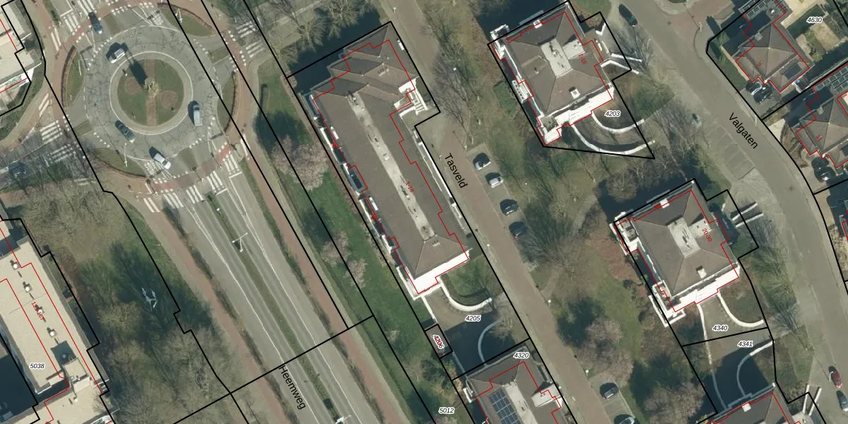 Tasveld 13 is gelegen op kadastraal perceel VHV01D4205. Deze kadastrale aanduiding is uniek en wordt gebruikt door het Kadaster om eigendomsrechten en andere zakelijke rechten vast te leggen. Het perceel maakt onderdeel uit van de kadastrale gemeente Veldhoven.