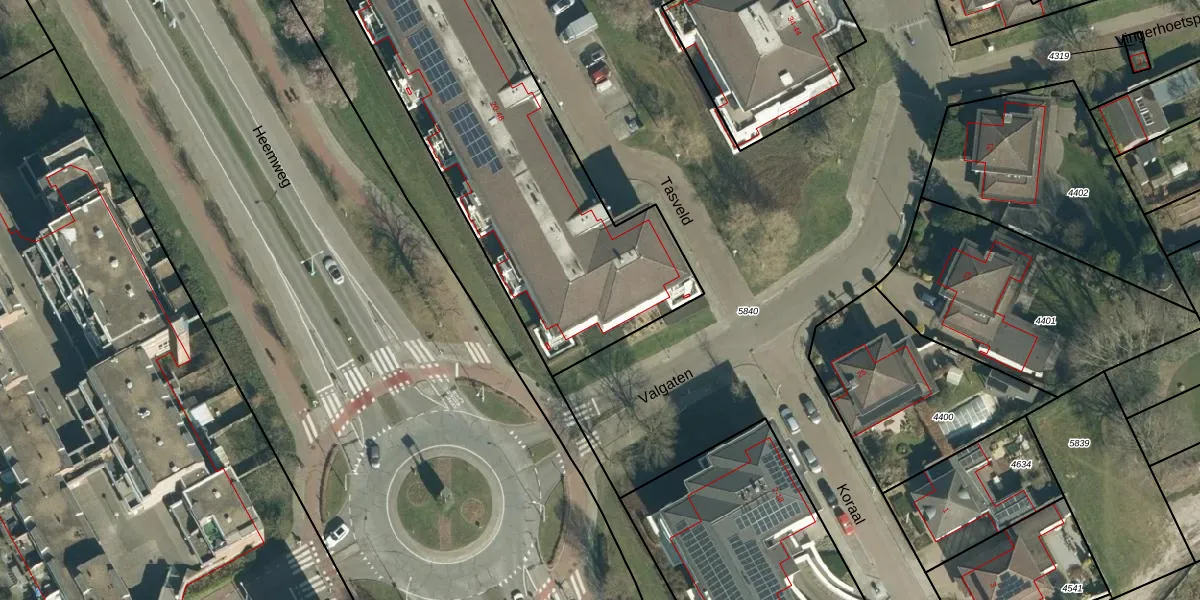 Tasveld 40 is gelegen op kadastraal perceel VHV01D4320. Deze kadastrale aanduiding is uniek en wordt gebruikt door het Kadaster om eigendomsrechten en andere zakelijke rechten vast te leggen. Het perceel maakt onderdeel uit van de kadastrale gemeente Veldhoven.