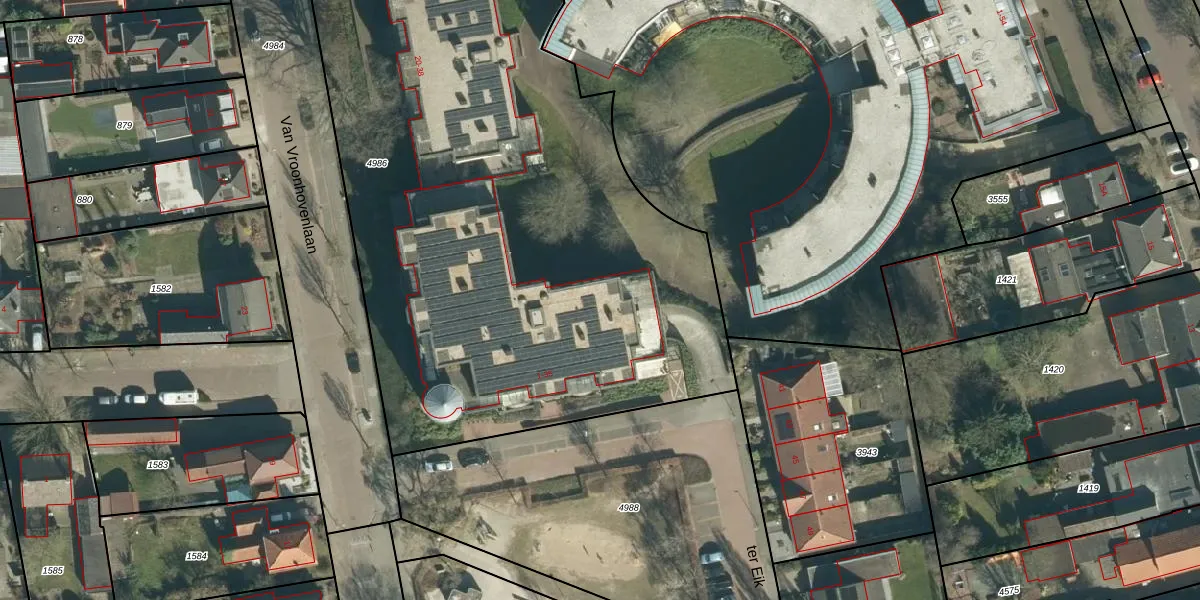 Het perceel waarop het adres ligt is VHV01-D-4986. De afkorting 'VHV01' staat voor kadastrale gemeente Veldhoven. De gemiddelde perceeloppervlakte in de kadastrale gemeente Veldhoven is 1489,56 m². Dit perceel is met zijn 4273 m² dus groter dan gemiddeld. De grootste perceeloppervlakte in de kadastrale gemeente is 78,9 ha. De kleinste oppervlakte bedraagt 0 m². Er zijn 28 adressen aanwezig op het perceel. In de Basisregistratie Kadaster (BRK) werden de grenzen van het perceel geregistreerd op 22-01-2009.