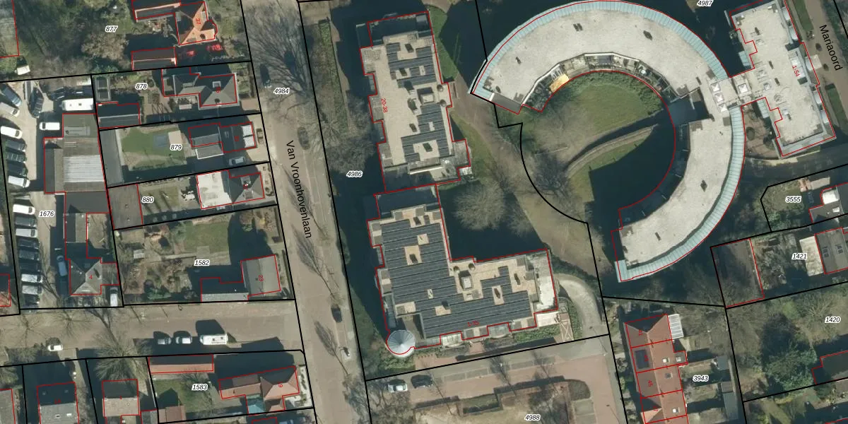 Het perceel waarop het adres ligt is VHV01-D-4986. De afkorting 'VHV01' staat voor kadastrale gemeente Veldhoven. Het perceel is met 4273 m² relatief groot. Het gemiddelde ligt in de kadastrale gemeente Veldhoven op 1489,56 m². Het grootste perceel in de kadastrale gemeente is 78,9 ha. Het kleinste perceel heeft een oppervlakte van 0 m². Op het perceel liggen in totaal 28 adressen. De laatste wijziging in het de Basisregistratie Kadaster (BRK) was op 22-01-2009.