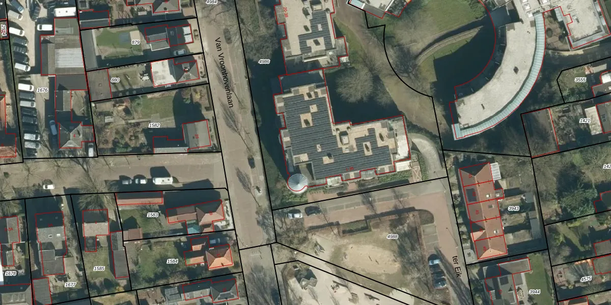 Het perceel waarop het adres ligt is VHV01-D-4986. De afkorting 'VHV01' staat voor kadastrale gemeente Veldhoven. Het perceel is met 4273 m² relatief groot. Het gemiddelde ligt in de kadastrale gemeente Veldhoven op 1489,56 m². Het grootste perceel in de kadastrale gemeente is 78,9 ha. Het kleinste perceel heeft een oppervlakte van 0 m². Op het perceel liggen in totaal 28 adressen. In de Basisregistratie Kadaster (BRK) werden de grenzen van het perceel geregistreerd op 22-01-2009.