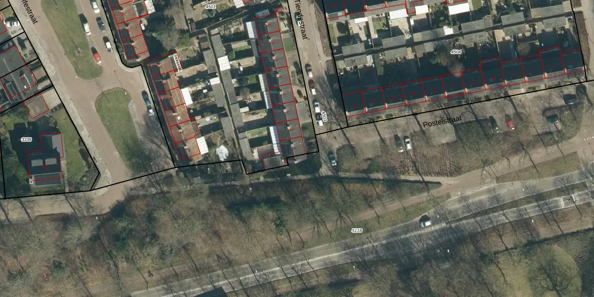 Het perceel waarop het adres ligt is VHV01-A-4501. De afkorting 'VHV01' staat voor kadastrale gemeente Veldhoven. Het perceel is met 6534 m² relatief groot. Het gemiddelde ligt in de kadastrale gemeente Veldhoven op 1485,46 m². De grootste perceeloppervlakte in de kadastrale gemeente is 78,9 ha. De kleinste oppervlakte bedraagt 0 m². Op het perceel liggen in totaal 37 adressen. De laatste wijziging in het de Basisregistratie Kadaster (BRK) was op 25-03-2009.