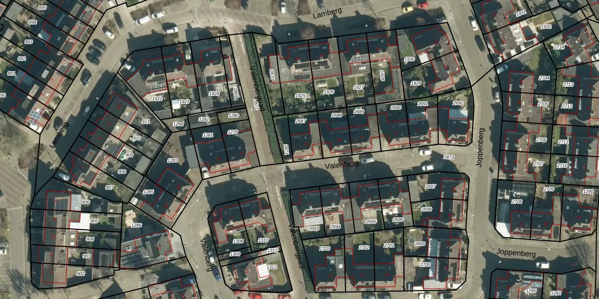 Het perceel waarop Valenberg 12 staat heeft een oppervlakte van 160 m². Dit is een middelgroot perceel. De perceeloppervlakte wordt geregistreerd door het Kadaster. Gedetailleerde informatie over de maten van dit perceel kunt u vinden in het rapport Kadastrale kaart met maatvoering van Valenberg 12.