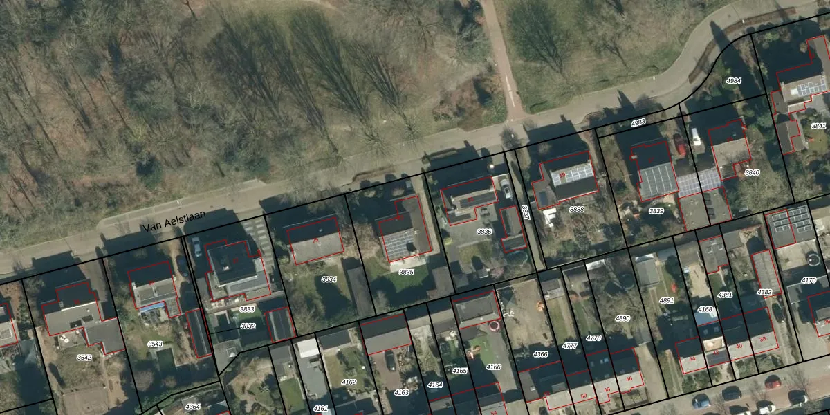 Het perceel waarop Van Aelstlaan 23 staat heeft een oppervlakte van 605 m². Dit is een groot perceel. De perceeloppervlakte wordt geregistreerd door het Kadaster. Gedetailleerde informatie over de maten van dit perceel kunt u vinden in het rapport Kadastrale kaart met maatvoering van Van Aelstlaan 23.
