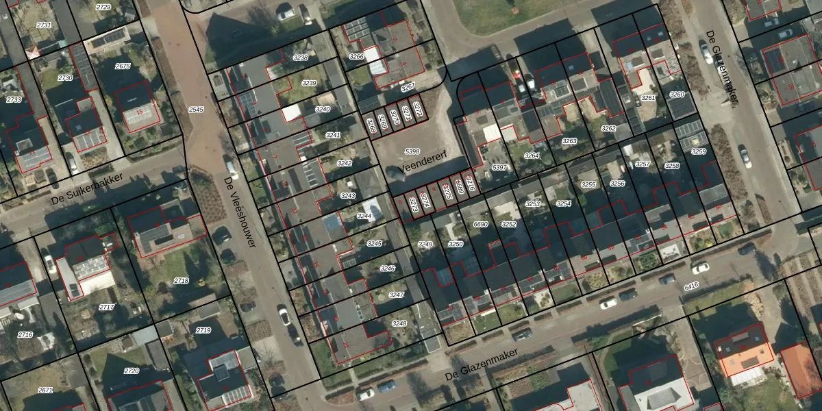 Gebruik de zoekbalk of klik op een perceel voor informatie over de adressen binnen dit perceel.