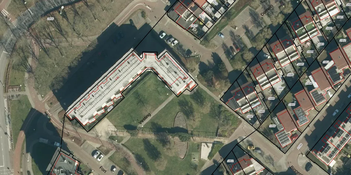 Het perceel waarop Vesting 28 staat heeft een oppervlakte van 1169 m². Dit is een zeer groot perceel. De perceeloppervlakte wordt geregistreerd door het Kadaster. Gedetailleerde informatie over de maten van dit perceel kunt u vinden in het rapport Kadastrale kaart met maatvoering van Vesting 28.