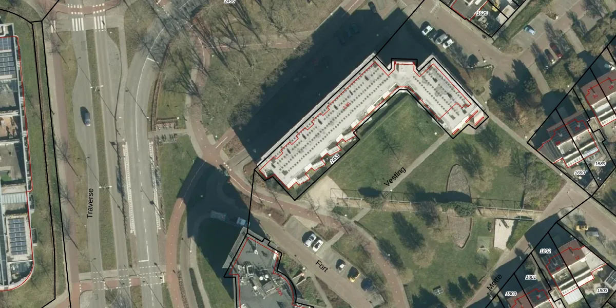 Het perceel waarop Vesting 32 staat heeft een oppervlakte van 1169 m². Dit is een zeer groot perceel. De perceeloppervlakte wordt geregistreerd door het Kadaster. Gedetailleerde informatie over de maten van dit perceel kunt u vinden in het rapport Kadastrale kaart met maatvoering van Vesting 32.