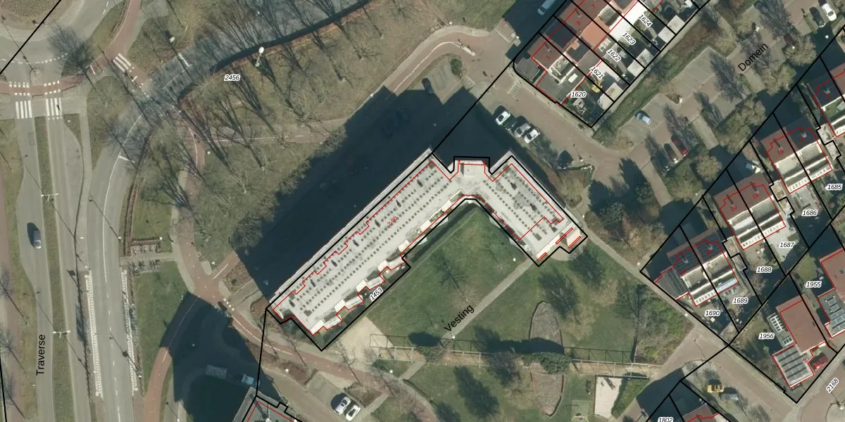 Het perceel waarop Vesting 40 staat heeft een oppervlakte van 1169 m². Dit is een zeer groot perceel. De perceeloppervlakte wordt geregistreerd door het Kadaster. Gedetailleerde informatie over de maten van dit perceel kunt u vinden in het rapport Kadastrale kaart met maatvoering van Vesting 40.