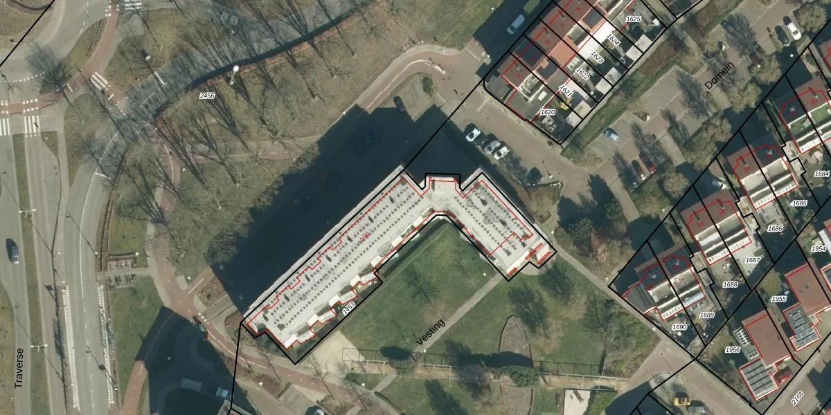 Het perceel waarop Vesting 42 staat heeft een oppervlakte van 1169 m². Dit is een zeer groot perceel. De perceeloppervlakte wordt geregistreerd door het Kadaster. Gedetailleerde informatie over de maten van dit perceel kunt u vinden in het rapport Kadastrale kaart met maatvoering van Vesting 42.