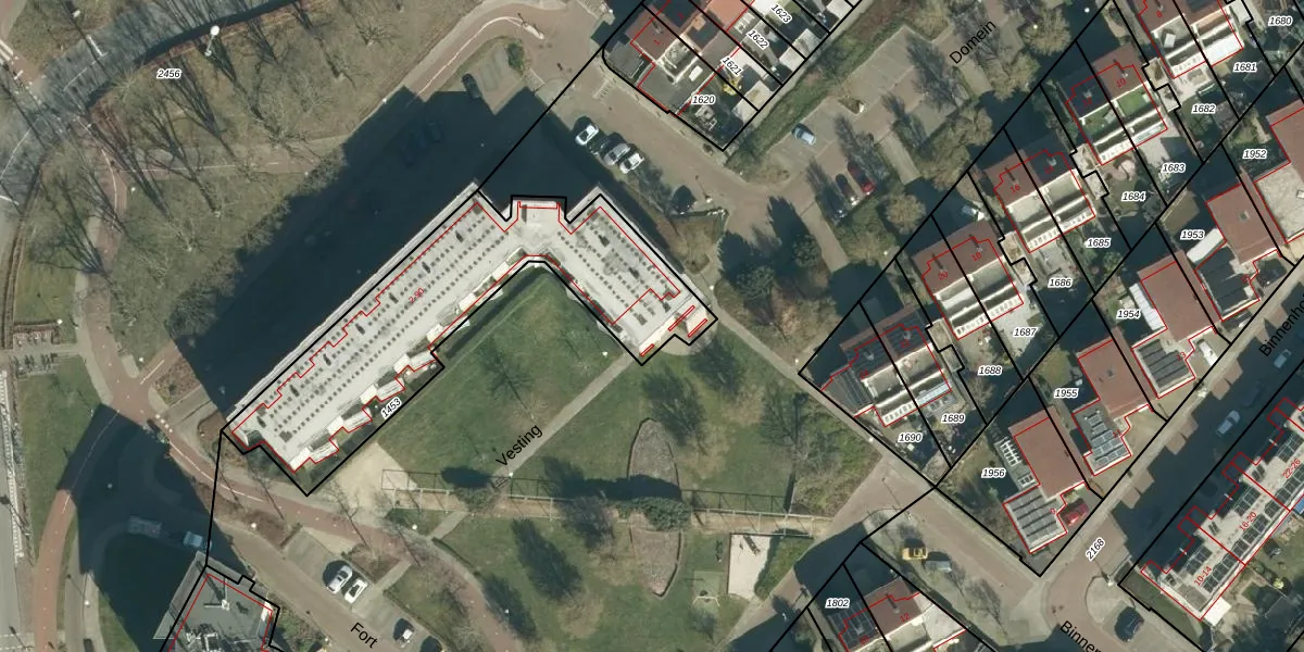 Het perceel waarop Vesting 48 staat heeft een oppervlakte van 1169 m². Dit is een zeer groot perceel. De perceeloppervlakte wordt geregistreerd door het Kadaster. Gedetailleerde informatie over de maten van dit perceel kunt u vinden in het rapport Kadastrale kaart met maatvoering van Vesting 48.