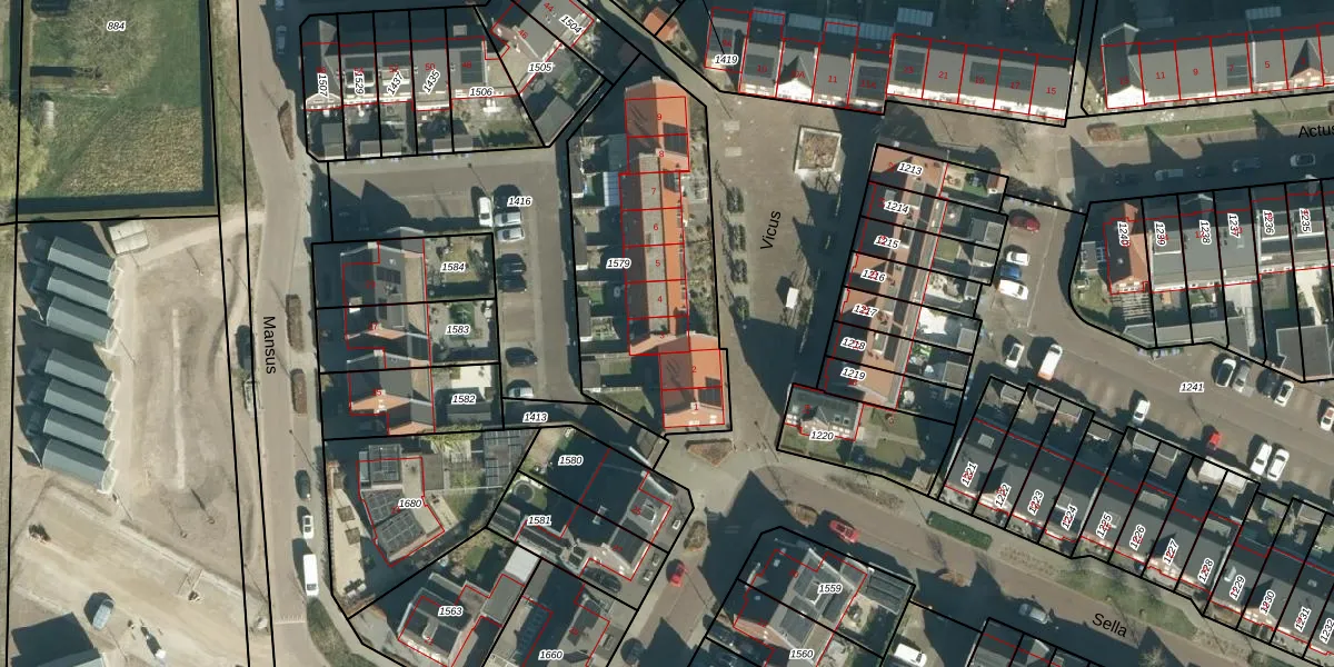 Het perceel waarop Vicus 3 staat heeft een oppervlakte van 1068 m². Dit is een zeer groot perceel. De perceeloppervlakte wordt geregistreerd door het Kadaster. Gedetailleerde informatie over de maten van dit perceel kunt u vinden in het rapport Kadastrale kaart met maatvoering van Vicus 3.