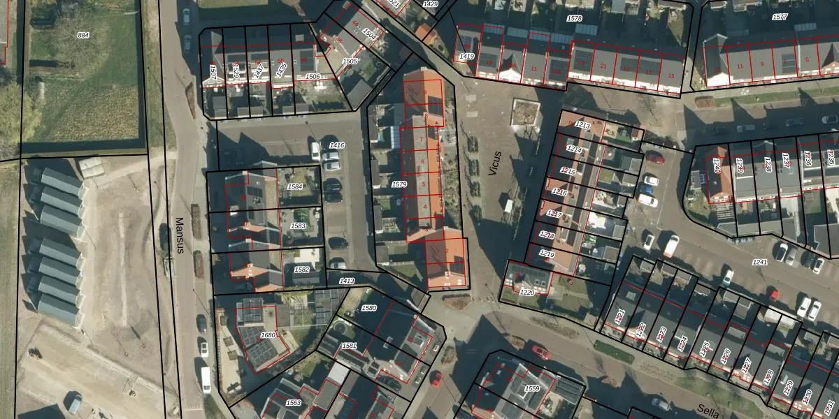 Het perceel waarop Vicus 4 staat heeft een oppervlakte van 1068 m². Dit is een zeer groot perceel. De perceeloppervlakte wordt geregistreerd door het Kadaster. Gedetailleerde informatie over de maten van dit perceel kunt u vinden in het rapport Kadastrale kaart met maatvoering van Vicus 4.