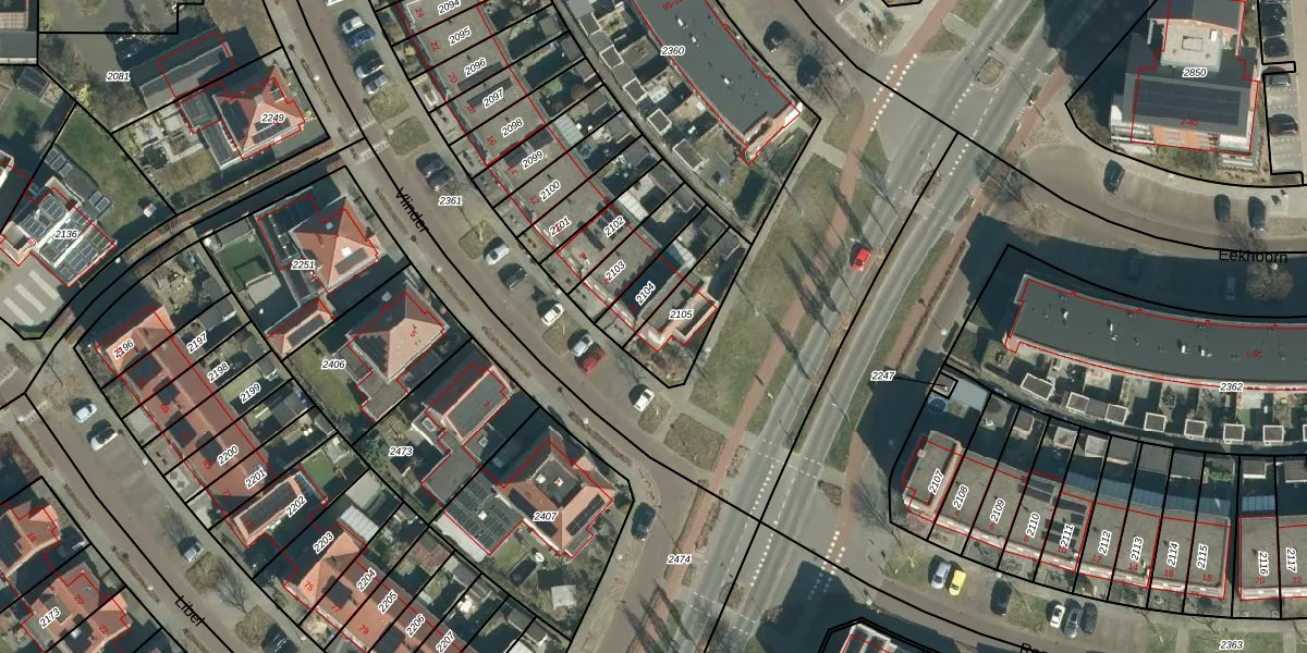 Gebruik de zoekbalk of klik op een perceel voor informatie over de adressen binnen dit perceel.