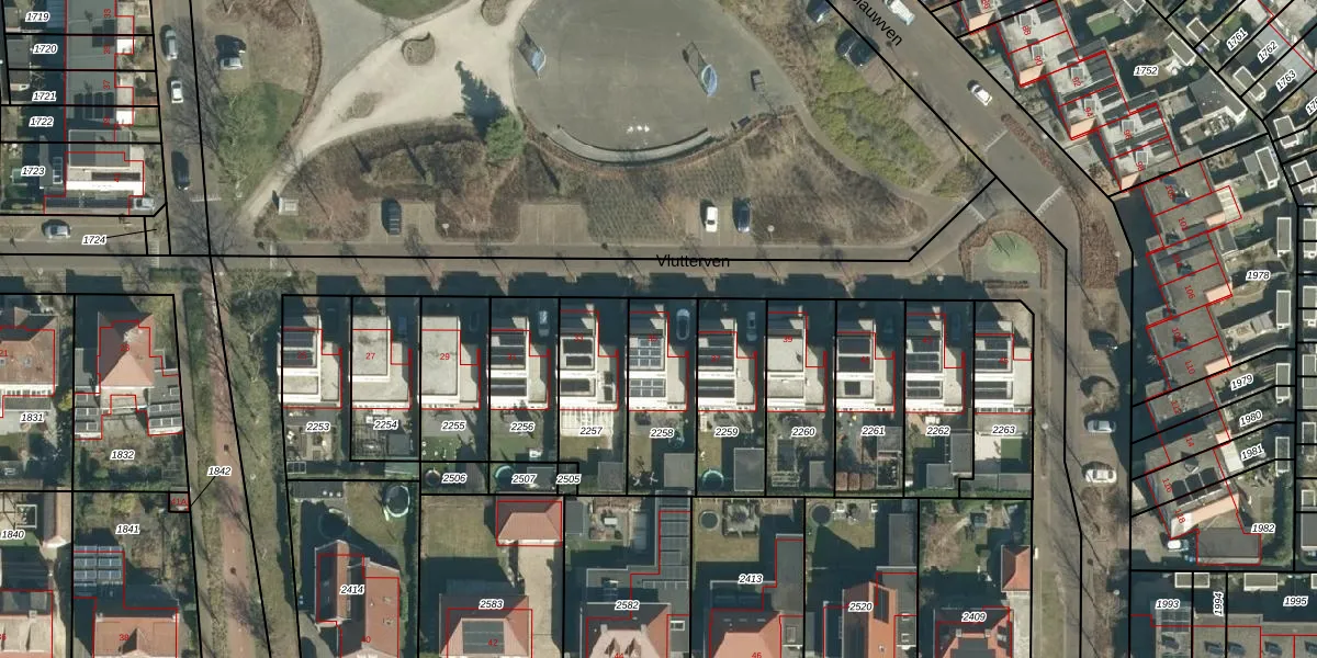 Het perceel waarop Vlutterven 35 staat heeft een oppervlakte van 316 m². Dit is een groot perceel. De perceeloppervlakte wordt geregistreerd door het Kadaster. Gedetailleerde informatie over de maten van dit perceel kunt u vinden in het rapport Kadastrale kaart met maatvoering van Vlutterven 35.
