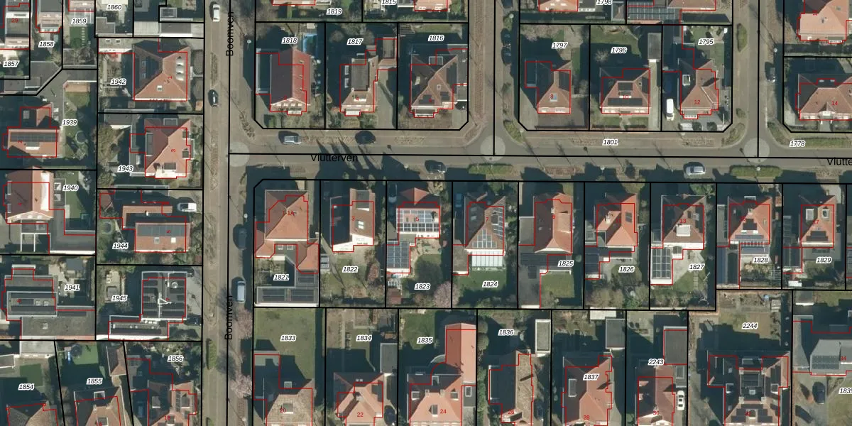Vlutterven 5 is gelegen op kadastraal perceel VHV01F1823. Deze kadastrale aanduiding is uniek en wordt gebruikt door het Kadaster om eigendomsrechten en andere zakelijke rechten vast te leggen. Het perceel maakt onderdeel uit van de kadastrale gemeente Veldhoven.