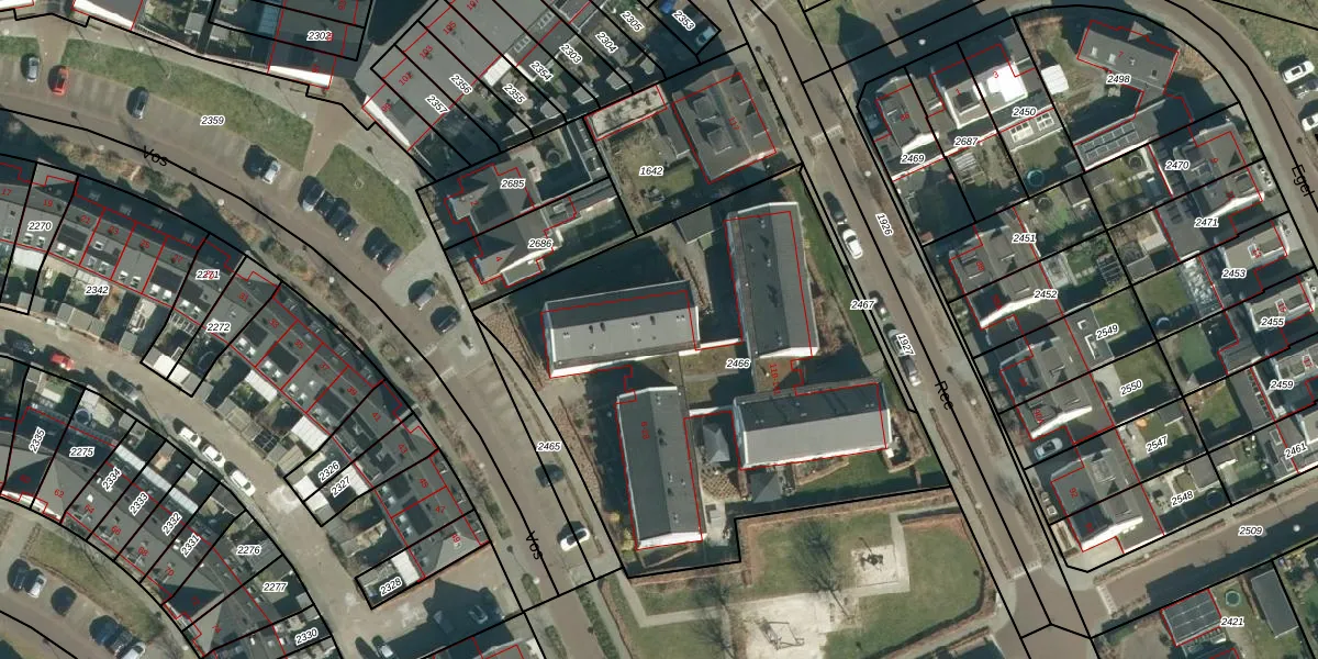 Het perceel waarop Vos 12 staat heeft een oppervlakte van 2490 m². Dit is een zeer groot perceel. De perceeloppervlakte wordt geregistreerd door het Kadaster. Gedetailleerde informatie over de maten van dit perceel kunt u vinden in het rapport Kadastrale kaart met maatvoering van Vos 12.