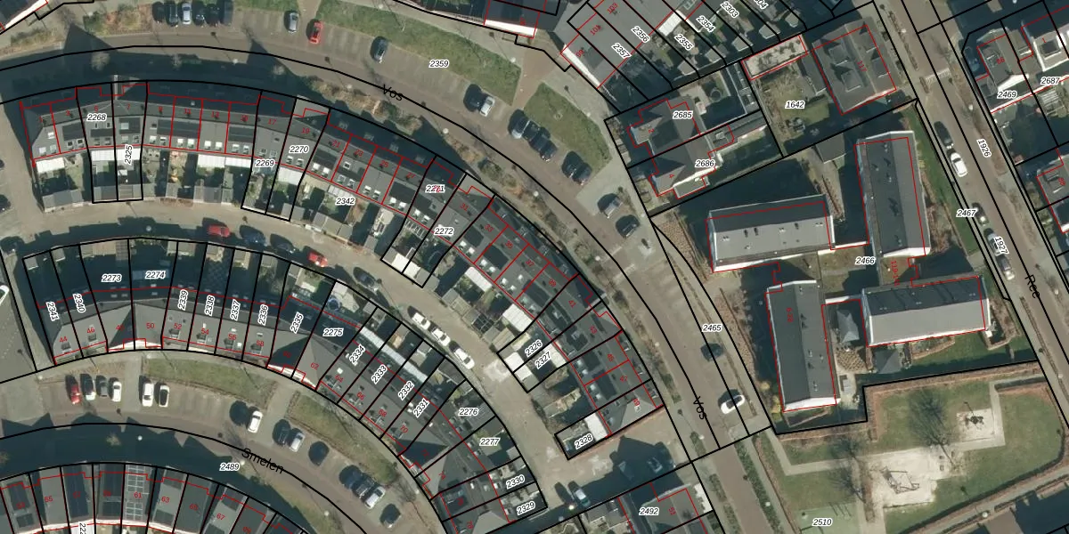 Het perceel waarop Vos 37 staat heeft een oppervlakte van 3415 m². Dit is een zeer groot perceel. De perceeloppervlakte wordt geregistreerd door het Kadaster. Gedetailleerde informatie over de maten van dit perceel kunt u vinden in het rapport Kadastrale kaart met maatvoering van Vos 37.