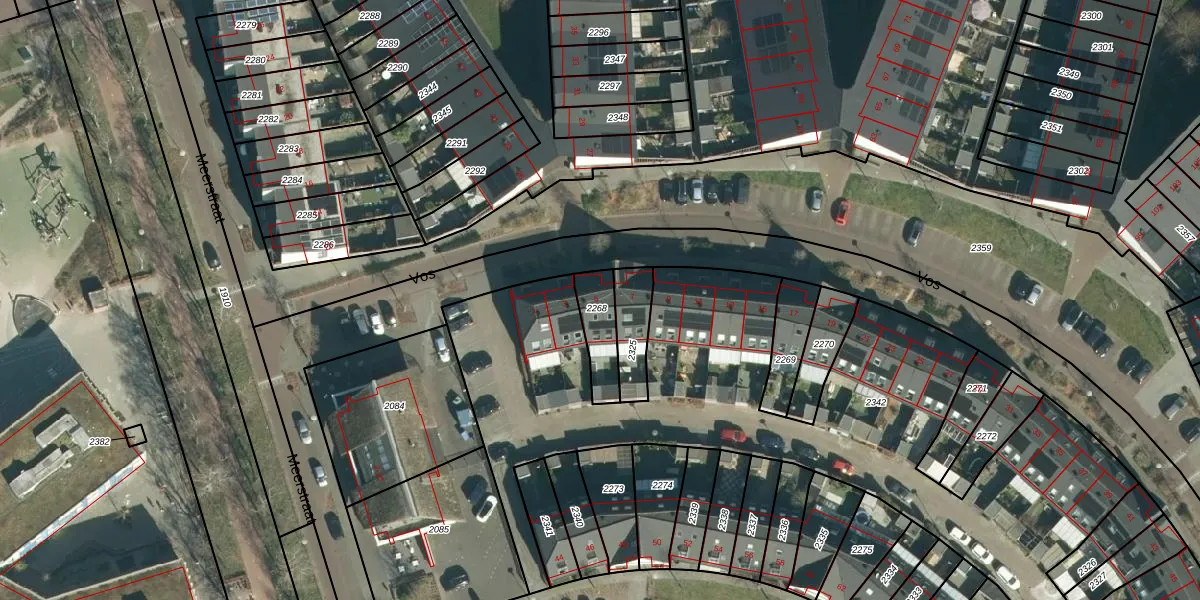 Gebruik de zoekbalk of klik op een perceel voor informatie over de adressen binnen dit perceel.