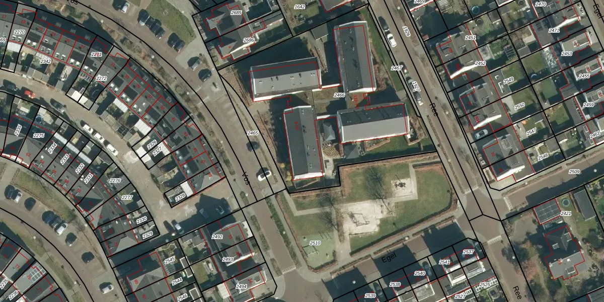 Het perceel waarop Vos 8 staat heeft een oppervlakte van 2490 m². Dit is een zeer groot perceel. De perceeloppervlakte wordt geregistreerd door het Kadaster. Gedetailleerde informatie over de maten van dit perceel kunt u vinden in het rapport Kadastrale kaart met maatvoering van Vos 8.