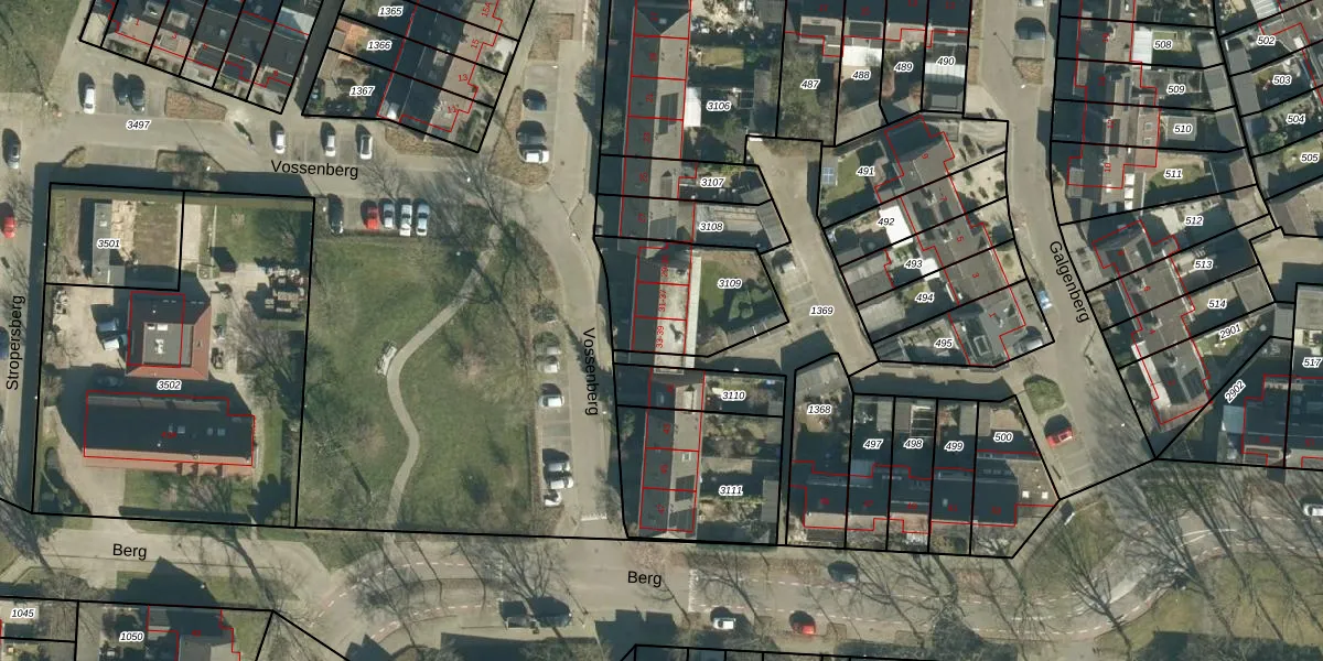 Het perceel waarop Vossenberg 39 staat heeft een oppervlakte van 403 m². Dit is een groot perceel. De perceeloppervlakte wordt geregistreerd door het Kadaster. Gedetailleerde informatie over de maten van dit perceel kunt u vinden in het rapport Kadastrale kaart met maatvoering van Vossenberg 39.