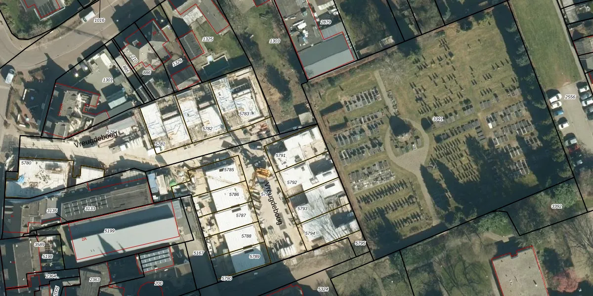 Vreugdeboog 4 is gelegen op kadastraal perceel VHV01D5791. Deze kadastrale aanduiding is uniek en wordt gebruikt door het Kadaster om eigendomsrechten en andere zakelijke rechten vast te leggen. Het perceel maakt onderdeel uit van de kadastrale gemeente Veldhoven.