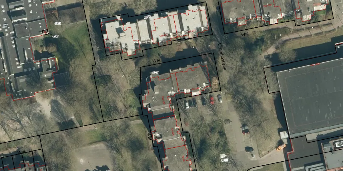 Het perceel waarop Wal 122 staat heeft een oppervlakte van 1992 m². Dit is een zeer groot perceel. De perceeloppervlakte wordt geregistreerd door het Kadaster. Gedetailleerde informatie over de maten van dit perceel kunt u vinden in het rapport Kadastrale kaart met maatvoering van Wal 122.