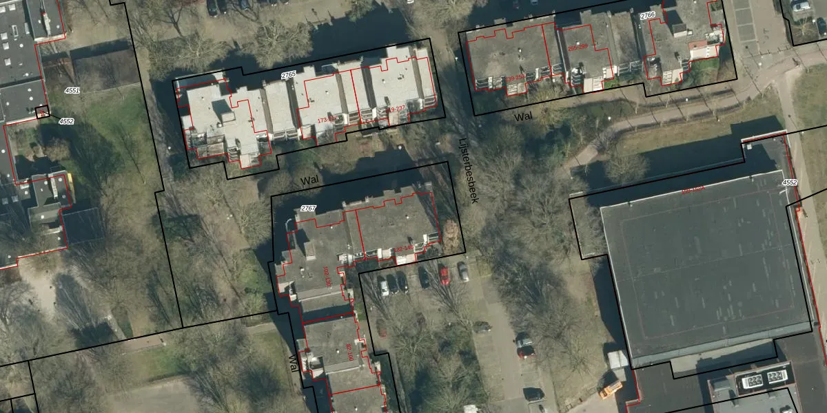 Het perceel waarop Wal 132 staat heeft een oppervlakte van 1992 m². Dit is een zeer groot perceel. De perceeloppervlakte wordt geregistreerd door het Kadaster. Gedetailleerde informatie over de maten van dit perceel kunt u vinden in het rapport Kadastrale kaart met maatvoering van Wal 132.