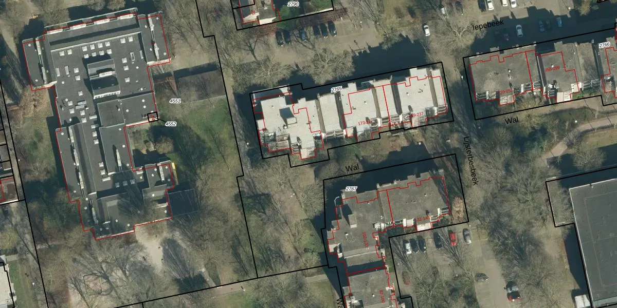Het perceel waarop Wal 195 staat heeft een oppervlakte van 1333 m². Dit is een zeer groot perceel. De perceeloppervlakte wordt geregistreerd door het Kadaster. Gedetailleerde informatie over de maten van dit perceel kunt u vinden in het rapport Kadastrale kaart met maatvoering van Wal 195.
