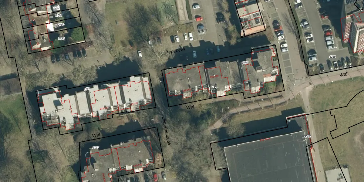 Het perceel waarop Wal 245 staat heeft een oppervlakte van 1414 m². Dit is een zeer groot perceel. De perceeloppervlakte wordt geregistreerd door het Kadaster. Gedetailleerde informatie over de maten van dit perceel kunt u vinden in het rapport Kadastrale kaart met maatvoering van Wal 245.