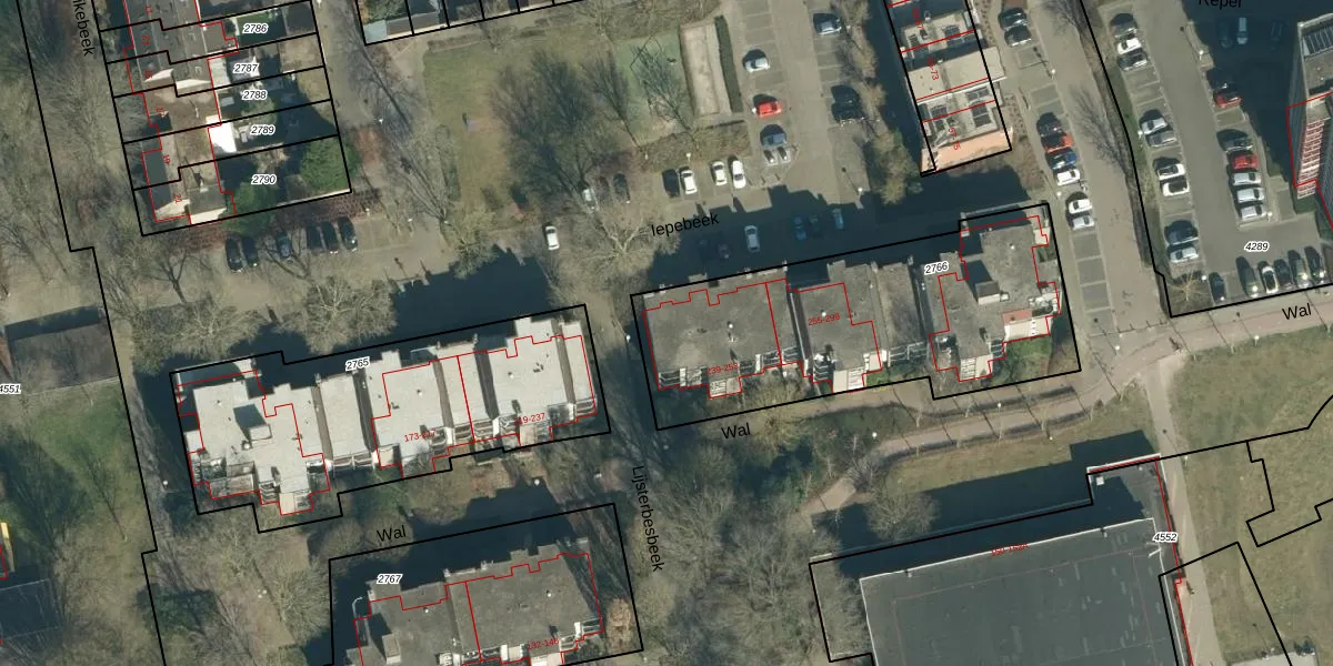 Het perceel waarop Wal 253 staat heeft een oppervlakte van 1414 m². Dit is een zeer groot perceel. De perceeloppervlakte wordt geregistreerd door het Kadaster. Gedetailleerde informatie over de maten van dit perceel kunt u vinden in het rapport Kadastrale kaart met maatvoering van Wal 253.