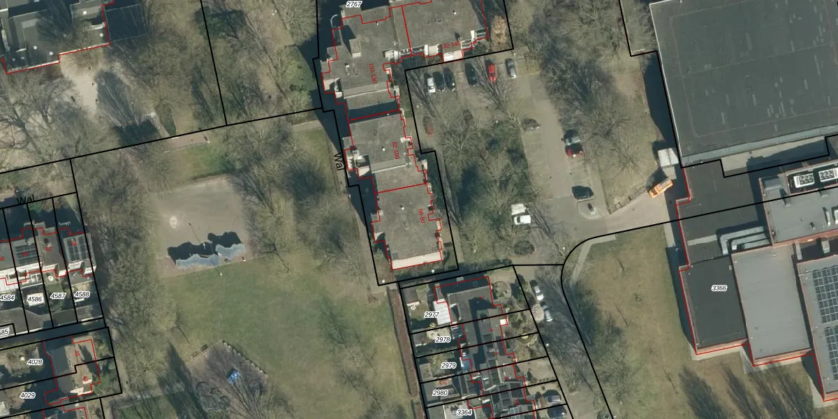 Het perceel waarop Wal 68 staat heeft een oppervlakte van 1992 m². Dit is een zeer groot perceel. De perceeloppervlakte wordt geregistreerd door het Kadaster. Gedetailleerde informatie over de maten van dit perceel kunt u vinden in het rapport Kadastrale kaart met maatvoering van Wal 68.