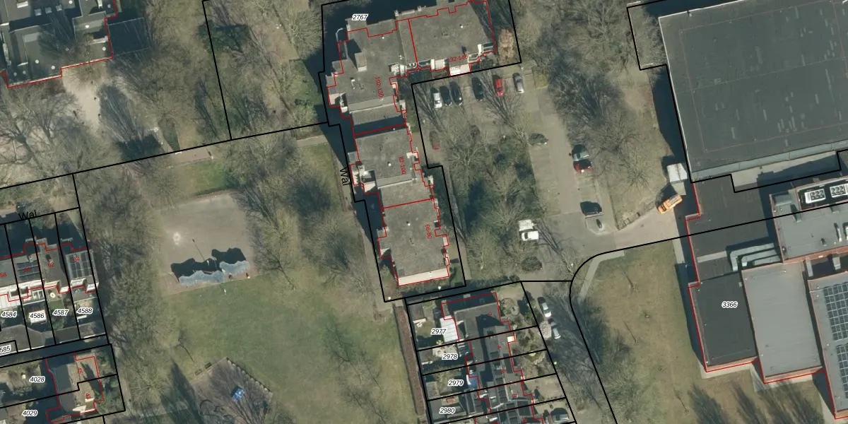 Het perceel waarop Wal 80 staat heeft een oppervlakte van 1992 m². Dit is een zeer groot perceel. De perceeloppervlakte wordt geregistreerd door het Kadaster. Gedetailleerde informatie over de maten van dit perceel kunt u vinden in het rapport Kadastrale kaart met maatvoering van Wal 80.