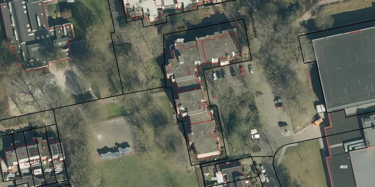 Het perceel waarop Wal 90 staat heeft een oppervlakte van 1992 m². Dit is een zeer groot perceel. De perceeloppervlakte wordt geregistreerd door het Kadaster. Gedetailleerde informatie over de maten van dit perceel kunt u vinden in het rapport Kadastrale kaart met maatvoering van Wal 90.