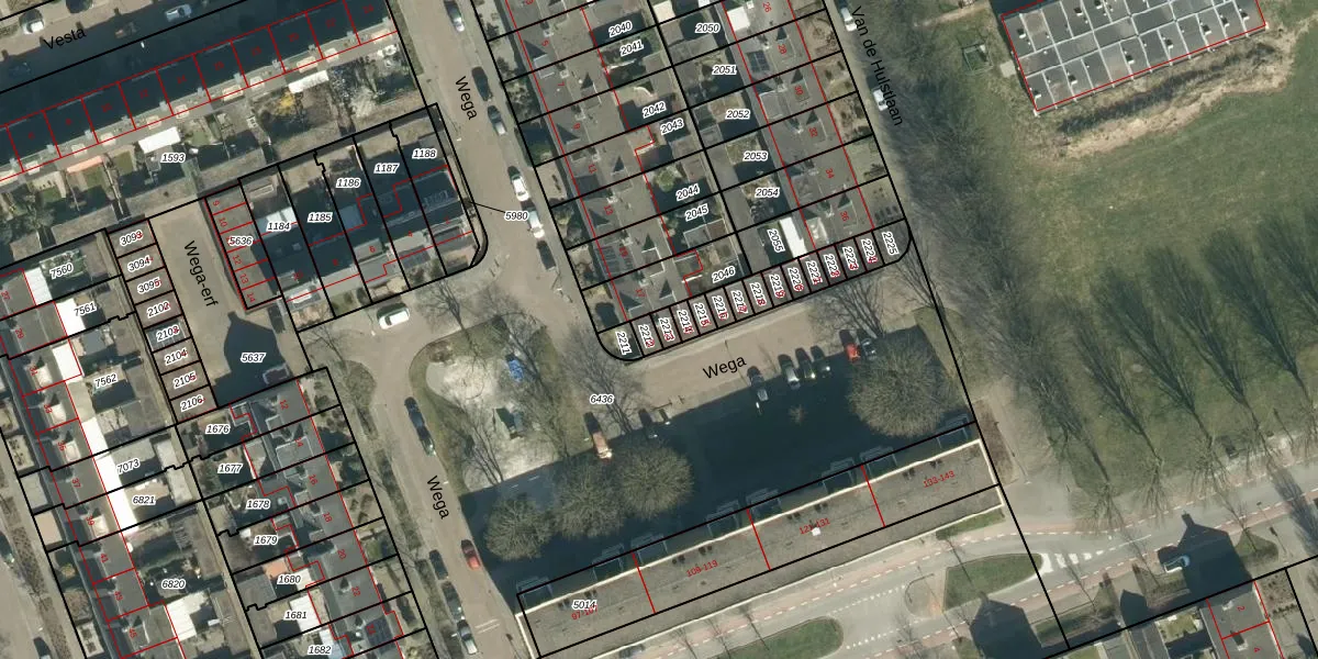 Het perceel waarop Wega 21 staat heeft een oppervlakte van 18 m². Dit is een klein perceel. De perceeloppervlakte wordt geregistreerd door het Kadaster. Gedetailleerde informatie over de maten van dit perceel kunt u vinden in het rapport Kadastrale kaart met maatvoering van Wega 21.