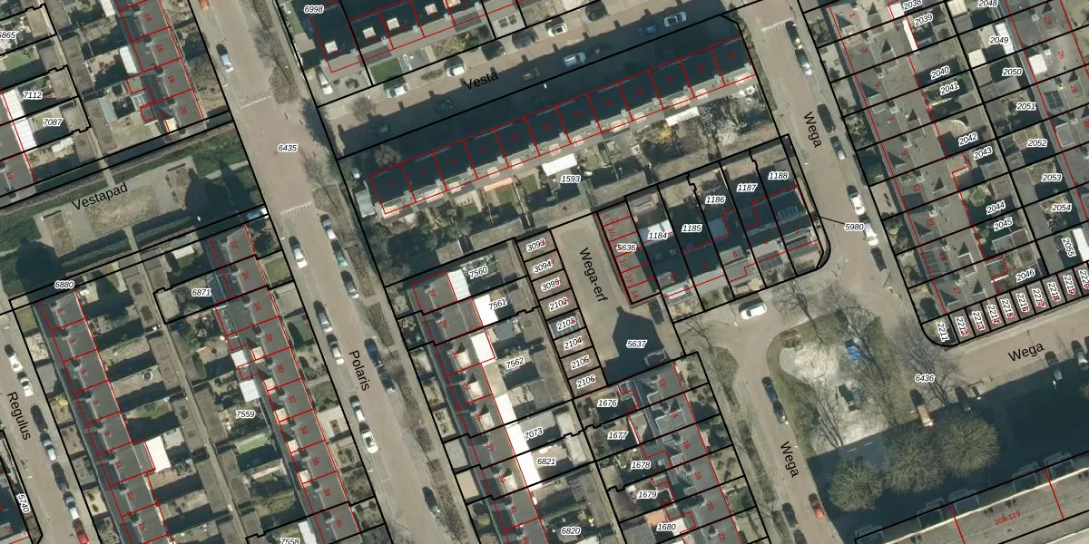 Het perceel waarop Wega-erf 7 staat heeft een oppervlakte van 25 m². Dit is een klein perceel. De perceeloppervlakte wordt geregistreerd door het Kadaster. Gedetailleerde informatie over de maten van dit perceel kunt u vinden in het rapport Kadastrale kaart met maatvoering van Wega-erf 7.