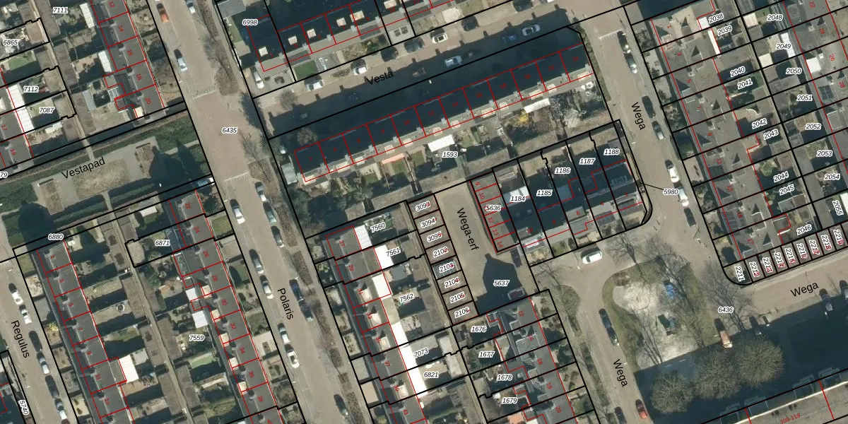 Het perceel waarop Wega-erf 8 staat heeft een oppervlakte van 25 m². Dit is een klein perceel. De perceeloppervlakte wordt geregistreerd door het Kadaster. Gedetailleerde informatie over de maten van dit perceel kunt u vinden in het rapport Kadastrale kaart met maatvoering van Wega-erf 8.