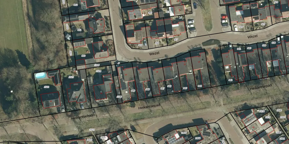 Wezel 21 is gelegen op kadastraal perceel VHV01F948. Deze kadastrale aanduiding is uniek en wordt gebruikt door het Kadaster om eigendomsrechten en andere zakelijke rechten vast te leggen. Het perceel maakt onderdeel uit van de kadastrale gemeente Veldhoven.