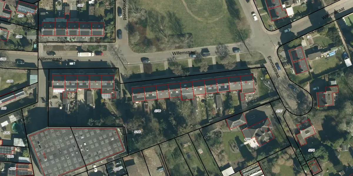 Het perceel waarop Willemstraat 18 staat heeft een oppervlakte van 3965 m². Dit is een zeer groot perceel. De perceeloppervlakte wordt geregistreerd door het Kadaster. Gedetailleerde informatie over de maten van dit perceel kunt u vinden in het rapport Kadastrale kaart met maatvoering van Willemstraat 18.