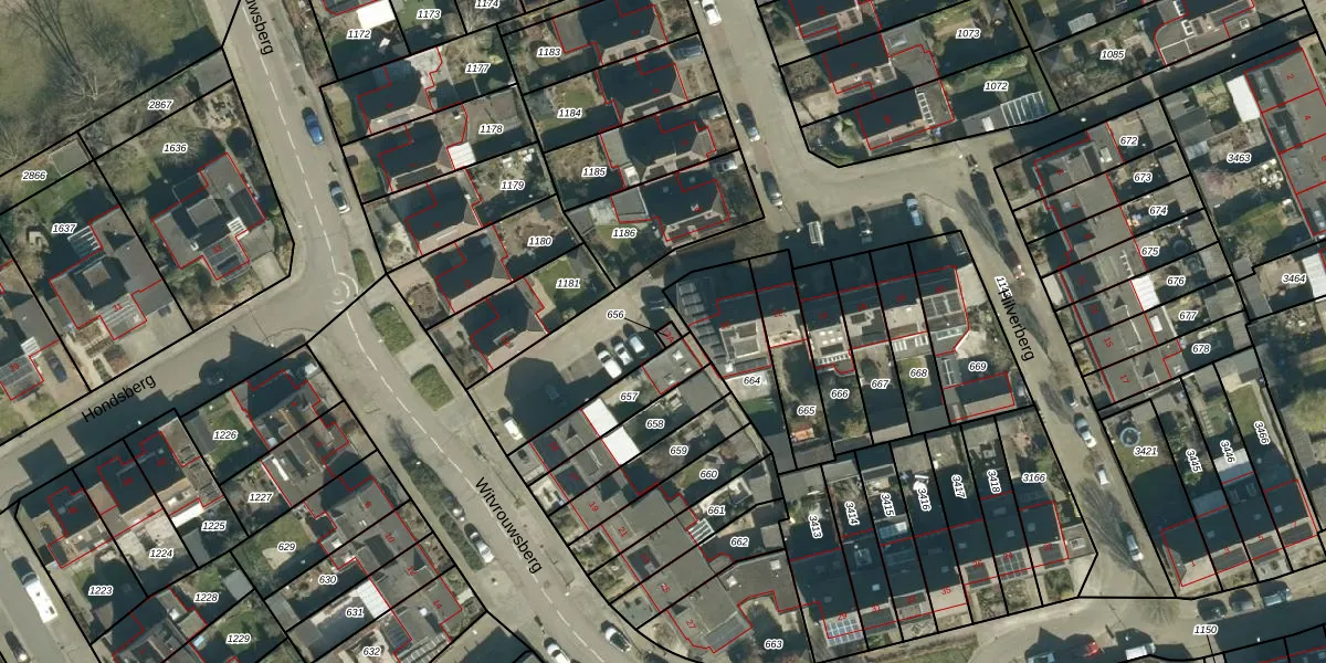 Witvrouwsberg 13-A is gelegen op kadastraal perceel VHV01I656. Deze kadastrale aanduiding is uniek en wordt gebruikt door het Kadaster om eigendomsrechten en andere zakelijke rechten vast te leggen. Het perceel maakt onderdeel uit van de kadastrale gemeente Veldhoven.