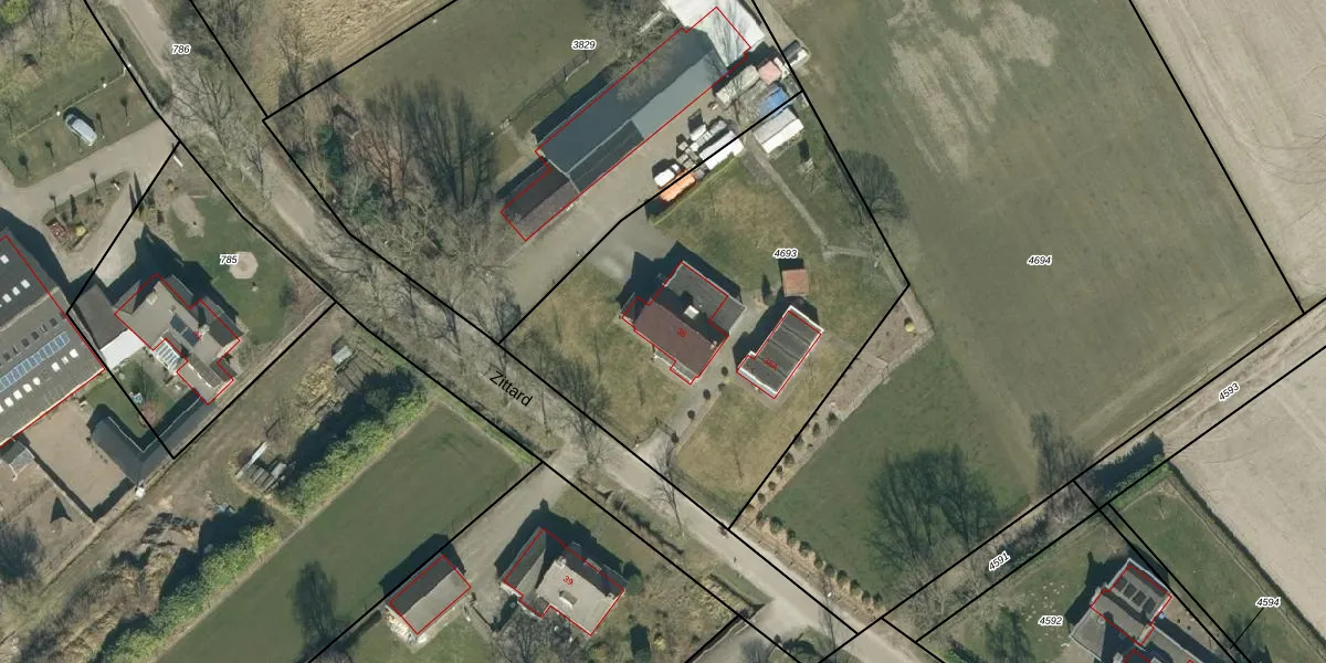 Het perceel waarop Zittard 38 staat heeft een oppervlakte van 2075 m². Dit is een zeer groot perceel. De perceeloppervlakte wordt geregistreerd door het Kadaster. Gedetailleerde informatie over de maten van dit perceel kunt u vinden in het rapport Kadastrale kaart met maatvoering van Zittard 38.