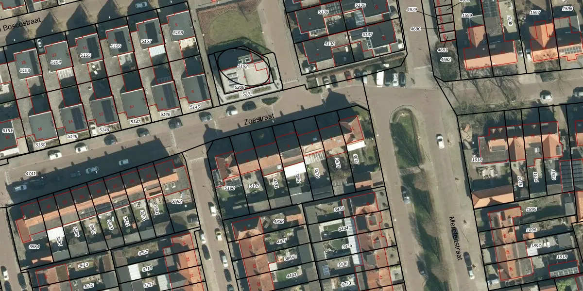 Zoestraat 5 is gelegen op kadastraal perceel VHV01A3862. Deze kadastrale aanduiding is uniek en wordt gebruikt door het Kadaster om eigendomsrechten en andere zakelijke rechten vast te leggen. Het perceel maakt onderdeel uit van de kadastrale gemeente Veldhoven.