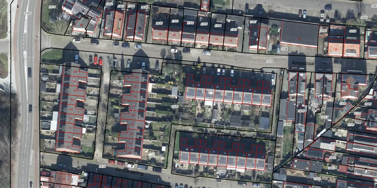 Annastraat 53 is gelegen op kadastraal perceel VEL01G2526. Deze kadastrale aanduiding is uniek en wordt gebruikt door het Kadaster om eigendomsrechten en andere zakelijke rechten vast te leggen. Het perceel maakt onderdeel uit van de kadastrale gemeente Velp Gelderland.