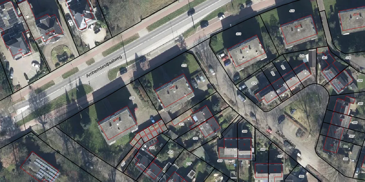 Arnhemsestraatweg 77 is gelegen op kadastraal perceel VEL01E372. Deze kadastrale aanduiding is uniek en wordt gebruikt door het Kadaster om eigendomsrechten en andere zakelijke rechten vast te leggen. Het perceel maakt onderdeel uit van de kadastrale gemeente Velp Gelderland.