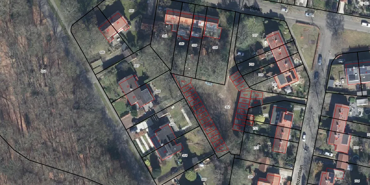Bachlaan 504 is gelegen op kadastraal perceel VEL01E352. Deze kadastrale aanduiding is uniek en wordt gebruikt door het Kadaster om eigendomsrechten en andere zakelijke rechten vast te leggen. Het perceel maakt onderdeel uit van de kadastrale gemeente Velp Gelderland.