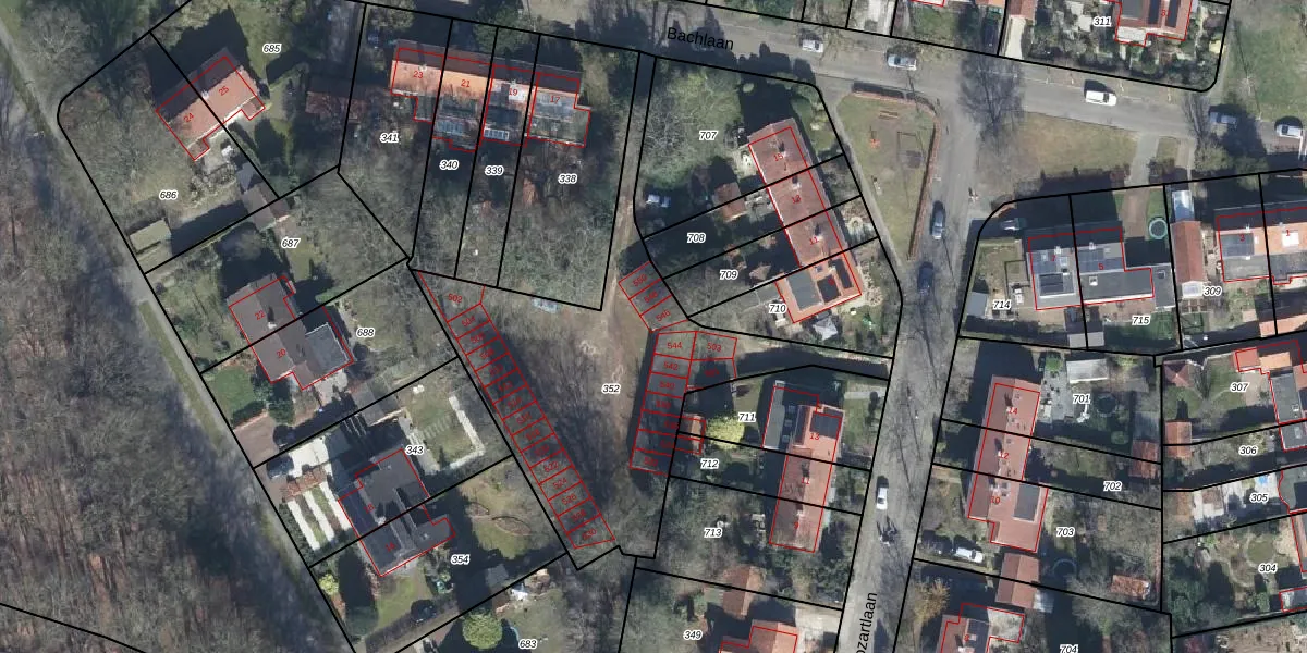 Bachlaan 546 is gelegen op kadastraal perceel VEL01E352. Deze kadastrale aanduiding is uniek en wordt gebruikt door het Kadaster om eigendomsrechten en andere zakelijke rechten vast te leggen. Het perceel maakt onderdeel uit van de kadastrale gemeente Velp Gelderland.