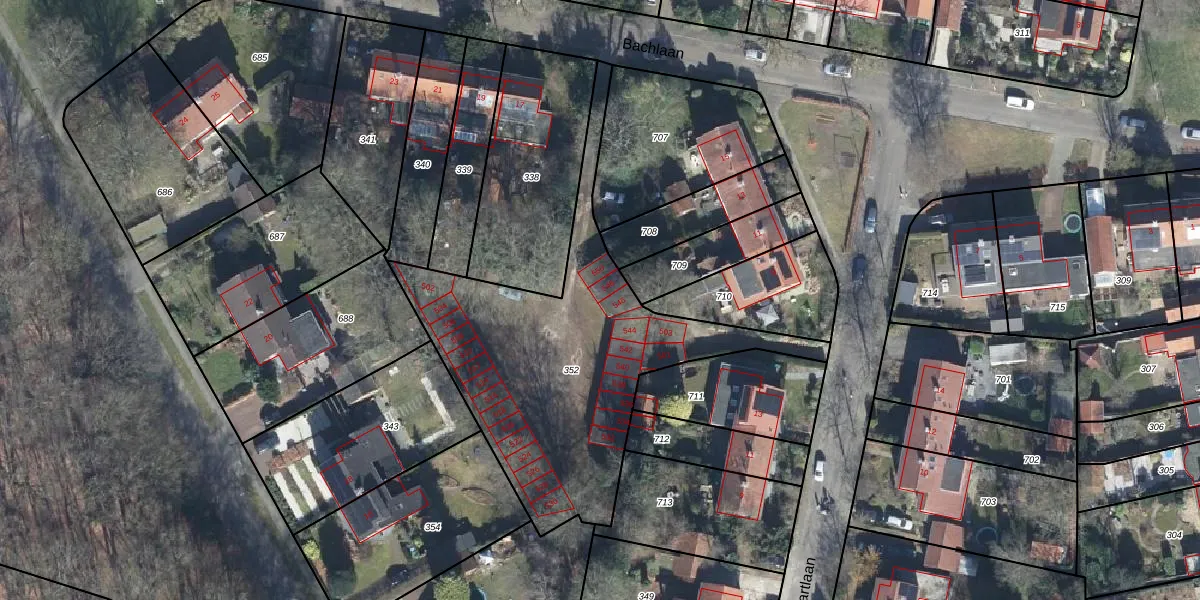 Bachlaan 548 is gelegen op kadastraal perceel VEL01E352. Deze kadastrale aanduiding is uniek en wordt gebruikt door het Kadaster om eigendomsrechten en andere zakelijke rechten vast te leggen. Het perceel maakt onderdeel uit van de kadastrale gemeente Velp Gelderland.