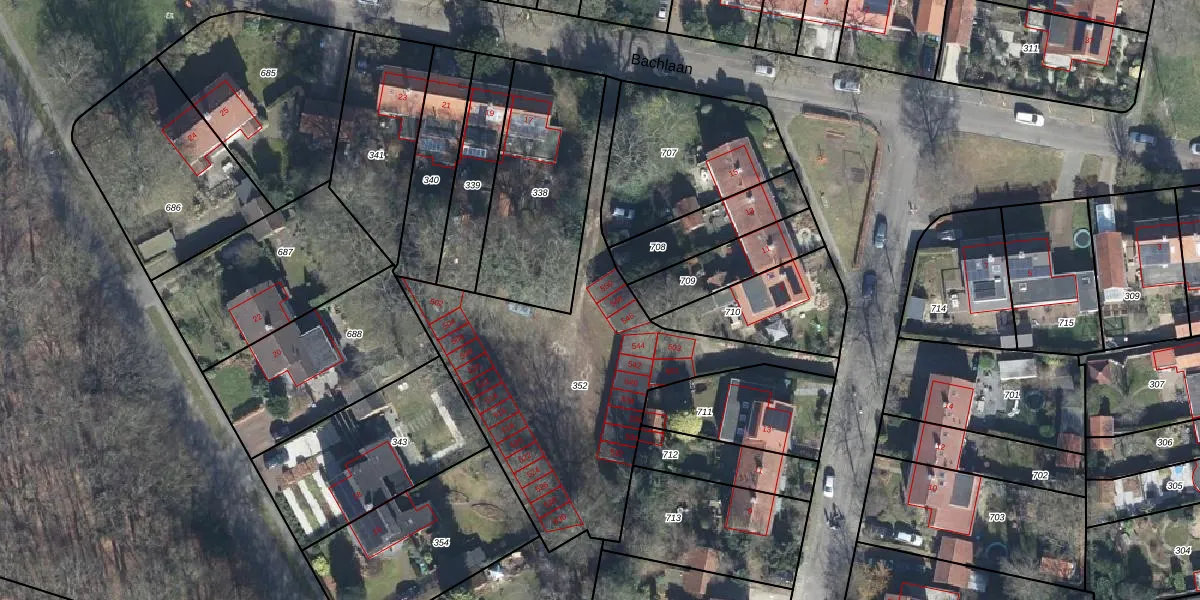 Bachlaan 550 is gelegen op kadastraal perceel VEL01E352. Deze kadastrale aanduiding is uniek en wordt gebruikt door het Kadaster om eigendomsrechten en andere zakelijke rechten vast te leggen. Het perceel maakt onderdeel uit van de kadastrale gemeente Velp Gelderland.