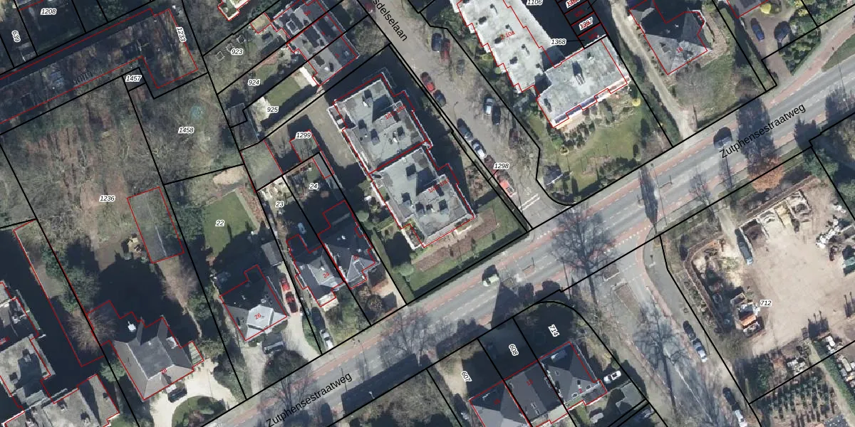 Het adres is gelegen op perceel 1299 in de sectie I en de kadastrale gemeente Velp Gelderland. De kadastrale aanduiding is aldus VEL01-I-1299. De oppervlakte van het perceel is 1715 m². Dat is groter dan gemiddeld in Velp Gelderland, waar de gemiddelde perceeloppervlakte op 1505,75 m² ligt. De grootste perceeloppervlakte in de kadastrale gemeente is 47,3 ha. De kleinste oppervlakte bedraagt 0 m². Er zijn 12 adressen aanwezig op het perceel. In de Basisregistratie Kadaster (BRK) werden de grenzen van het perceel geregistreerd op 25-04-2001.