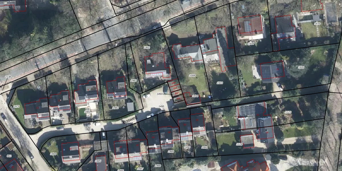 Het perceel waarop Bosweg 506 staat heeft een oppervlakte van 655 m². Dit is een groot perceel. De perceeloppervlakte wordt geregistreerd door het Kadaster. Gedetailleerde informatie over de maten van dit perceel kunt u vinden in het rapport Kadastrale kaart met maatvoering van Bosweg 506.
