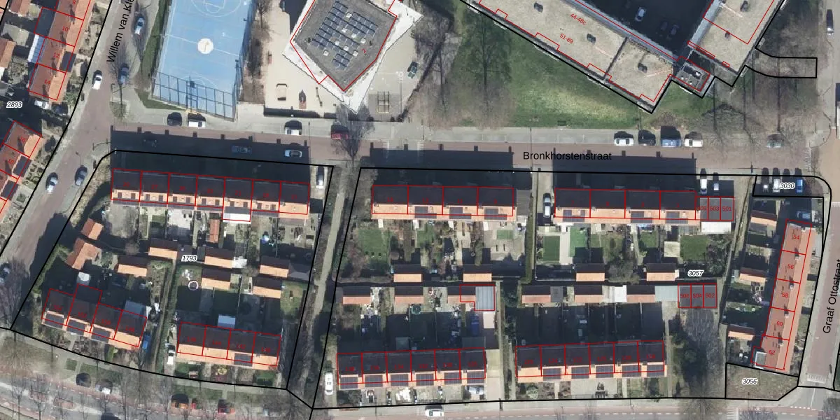 Bronkhorstenstraat 13 is gelegen op kadastraal perceel VEL01G3057. Deze kadastrale aanduiding is uniek en wordt gebruikt door het Kadaster om eigendomsrechten en andere zakelijke rechten vast te leggen. Het perceel maakt onderdeel uit van de kadastrale gemeente Velp Gelderland.